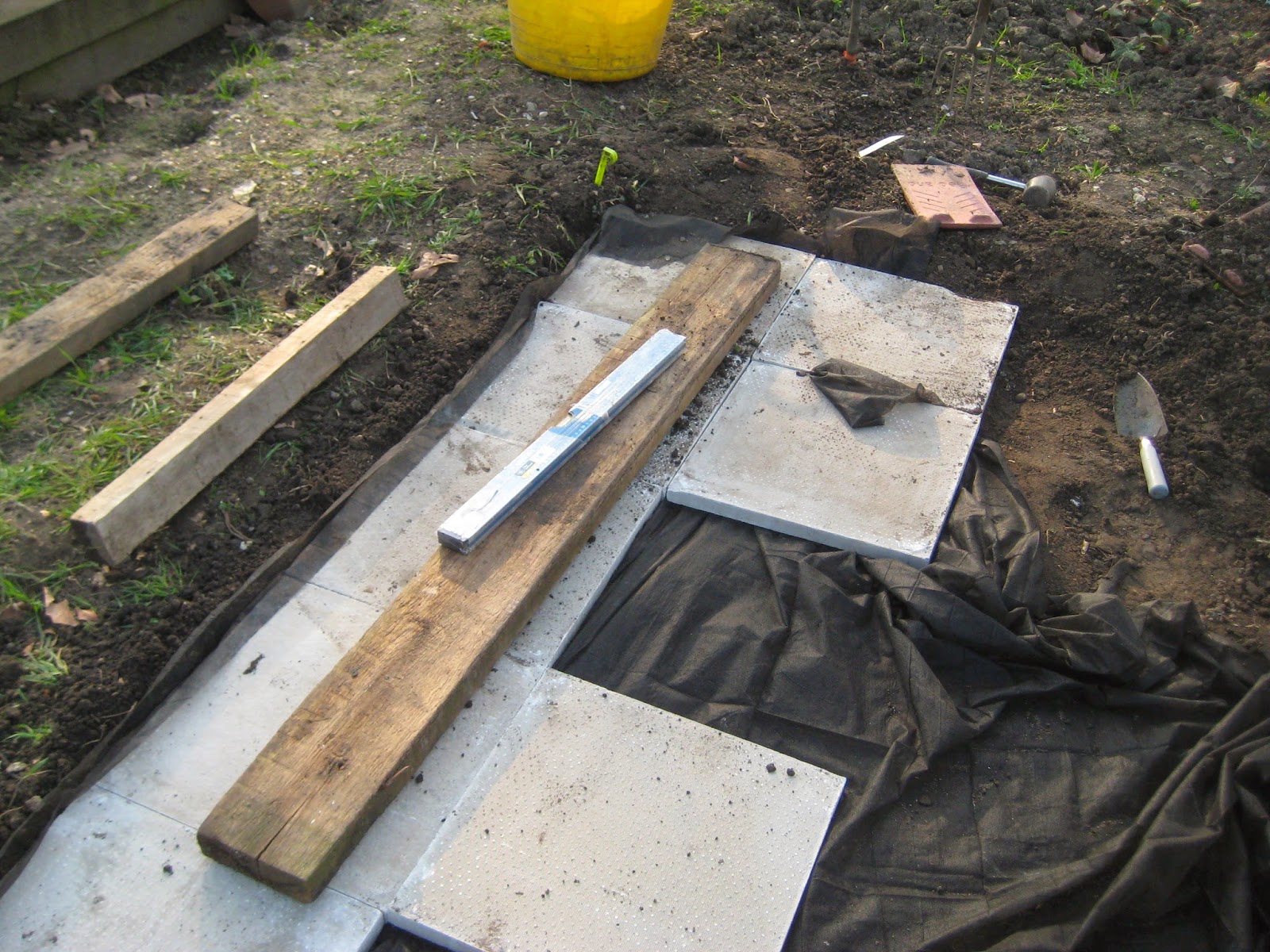 Last week I mentioned that I was going to add a small greenhouse to Plot 202. Well B&Q dispatched the unit in a most timely way and it arrived on Tuesday afternoon as mentioned I bought some concrete slabs to create a greenhouse base Yesterday I spent some time in the early spring sunshine, lining them up ready for the addition. Plan is to put some sand around the slabs to further level and fill gaps hopefully I will then be able to secure the structure onto the base - will see how this goes.